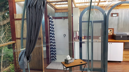 4.0m dia. translucent polycarbonate dome mounted on a hardwood timber deck. Includes solar 12v & 24v system for lighting and fridge, gas HW, bath, shower, compost toilet, kitchen and all inclusions ready to go. As an airbnb, get your money back in less than 18months. The entire set-up has been disassembled but includes: